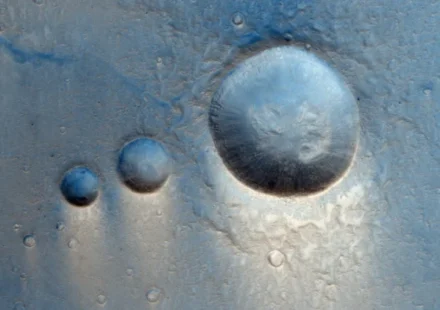 В ходе пятилетней миссии орбитальный аппарат ЕКА ExoMars Trace Gas Orbiter недавно сделал интересный и интригующий снимок. На изображении показаны три кратера, выстроенные в ряд от самого маленького к самому большому. Разработанный Европейским…