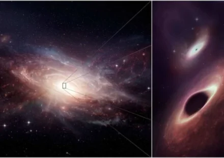 Используя радиоинтерферометр ALMA для изучения пары сливающихся галактик, исследовательская группа обнаружила две сверхмассивные черные дыры, растущие в центре формирующейся галактики. Эта пара будет содержать две самые близкие черные дыры, когда-либо…