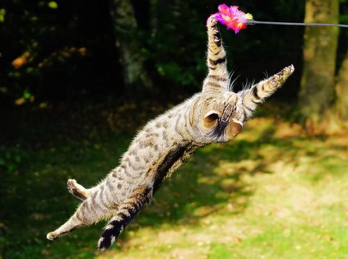 Игры имеют чрезвычайно важное значение для кошек. Как котята, так и взрослые кошки с удовольствием будут охотится за своей жертвой, будь то игрушка или рука человека. Игра для кошки происходит на уровне инстинкта, ведь в дикой природе, представители семейства кошачьих вынуждены преследовать и убивать свою жертву, чтобы выжить. Производители игрушек знают об этом и изготавливают продукцию, которая отлично подходит этим хищникам, включая игрушечных мышей, птиц, бабочек и других «жертв», а также лазерные игрушки, чтобы преследовать луч света.