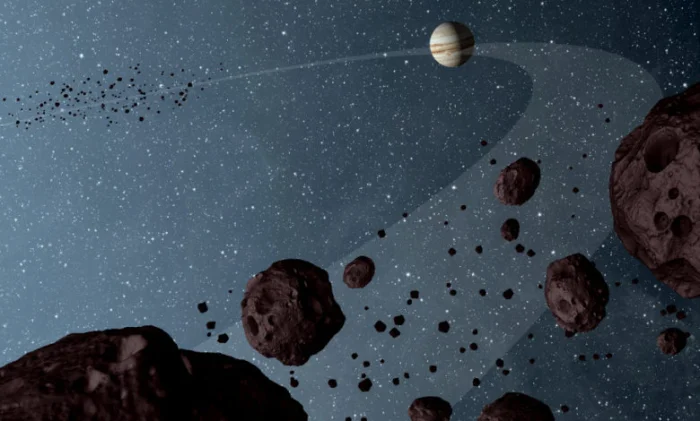 Троянские астероиды — это астероиды, которые разделяют орбиту Юпитера вокруг Солнца. Они были собраны гигантом несколько миллиардов лет назад, в ловушке его огромного гравитационного притяжения. Эти объекты разделены на две подгруппы: «Троянский лагерь» с одной стороны и «Греческий лагерь» с другой. Первые опережают Юпитер (впереди на линии орбиты), вторые — позади (позади Юпитера на линии орбиты).