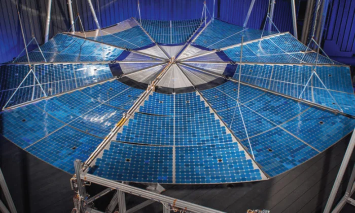 DSS, с другой стороны, разрабатывает систему Mega-ROSA, опять же потому, что инженеры любят интересные приставки, утверждая, что она может производить от 100 до 300 кВт на околоземной орбите. Что касается второго пункта, DSS также работает над проектом SOLAROSA, в рамках которого к разворачиваемой панели добавляются гибкие концентрирующие линзы, которые в идеале должны надуваться при развертывании панели, тем самым устраняя главный недостаток концентрирующих массивов — их громоздкость.