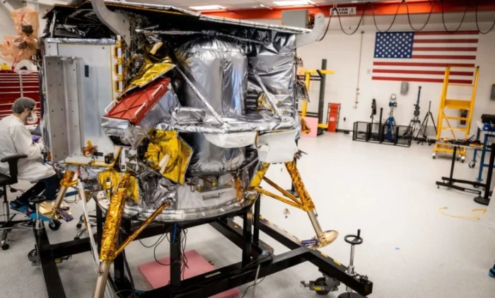 Полностью собранная посадочная платформа Peregrine на последних этапах испытаний.[/caption]
