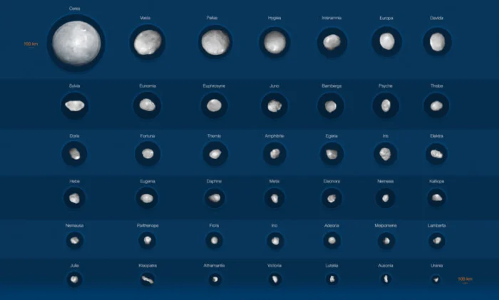 Телескоп VLT (Очень большой телескоп) в Чили создал первую коллекцию фотографий высокой четкости астероидов главного пояса. Он состоит из 42 изображений — композиции, составленной ESO из крупных астероидов, вращающихся между Марсом и Юпитером. Главный пояс астероидов — это группа каменистых объектов, которая находится между последней каменистой планетой Солнечной системы и первым газовым гигантом.