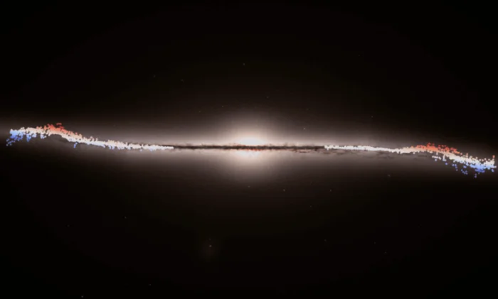 Космический телескоп «Гайя», принадлежащий Европейскому космическому агентству, обнаружил новую динамику в структуре нашей Галактики — масштабную волну из звезд, которая распространяется из центральных регионов к внешним краям галактического диска. На протяжении десятилетий было известно, что Млечный Путь вращается вокруг своего центра и его диск деформирован, то есть искривлен вверх с одной стороны и вниз с другой. Однако новые данные с «Гайи» показывают, что эта деформация не является статичной. Напротив, она ведет себя как движущаяся волна, настоящая осцилляция, которая затрагивает обширные области галактического диска, далеко за пределами местоположения Солнца.