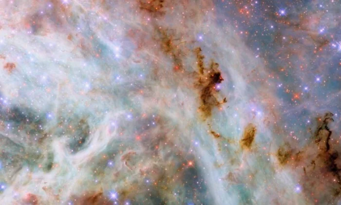 Космический телескоп Хаббл сделал потрясающий снимок ярких и красочных облаков газа и пыли, расположенных рядом с туманностью Тарантул. Эта туманность, находящаяся на расстоянии около 160 000 световых лет от Земли в галактике Большое Магелланово Облако, является одним из самых ярких и активных регионов звездообразования в нашей галактической окрестности.