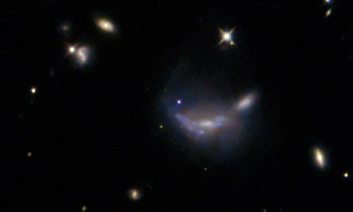 Космический телескоп НАСА «Хаббл» сделал уникальный снимок галактики в созвездии Близнецов, расположенной в 600 миллионах световых лет от Земли. На изображении, полученном спустя два месяца после обнаружения сверхновой SN 2022aajn, яркая синяя точка в центре галактики отмечает место мощного взрыва звезды.