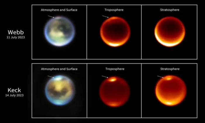 Космический телескоп James Webb и обсерватория Keck II впервые зафиксировали прямое доказательство образования облаков на Титане, самом крупном спутнике Сатурна. Это открытие позволило ученым лучше понять процессы атмосферной конвекции, которые формируют характерную желтую дымку Титана, а также создают систему осадков и погодных явлений, похожих на земные. Однако вместо воды здесь участвует метан.