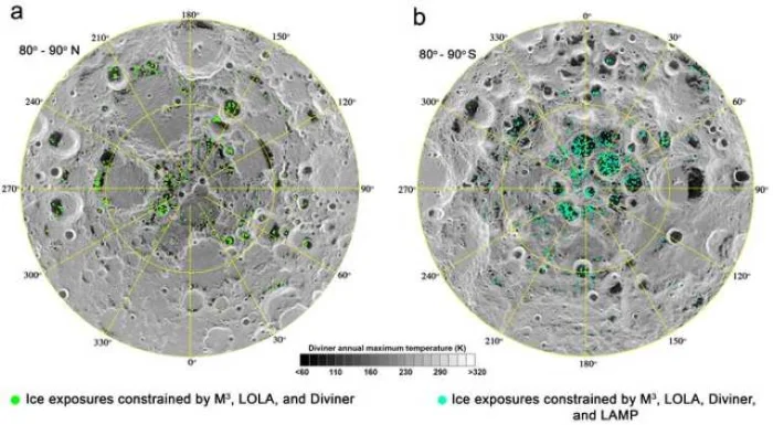 По ранним оценкам исследователей из Гавайского университета в Маноа, которые в 2018 году сделали первое открытие водяного льда на поверхности Луны, до 30 % площади поверхности в этих постоянно затененных областях (ПЗО) состояли из ледяных отложений.