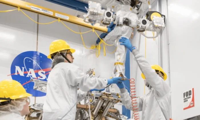 Высокая мачта лунохода VIPER, что расшифровывается как Volatiles Investigating Polar Exploration Rover, была недавно поднята и успешно интегрирована в основную конструкцию аппарата в стерильных помещениях Космического центра НАСА имени Джонсона в Хьюстоне, штат Техас.