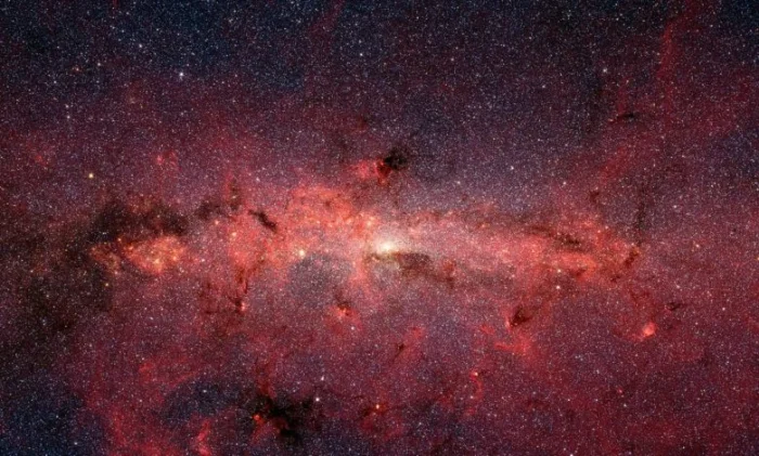 Изображение в инфракрасном диапазоне длин волн, опубликованное в 2006 году и полученное на основе данных космического телескопа НАСА Спитцер. На нем показаны сотни тысяч звезд, сгруппированных в центре Млечного Пути.[/caption]