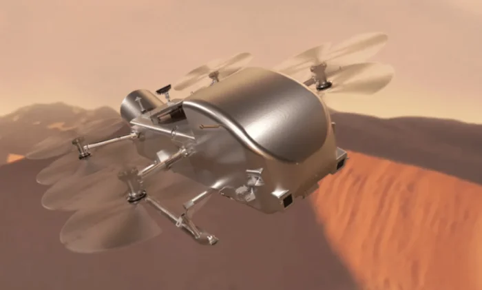 Dragonfly будет представлять собой роторный посадочный аппарат, похожий на большой квадрикоптер со сдвоенными роторами, всего восемь пропеллеров. Он сможет летать со скоростью 10 м/с на высоте до 4 км, используя преимущества плотной атмосферы и низкой гравитации Титана.