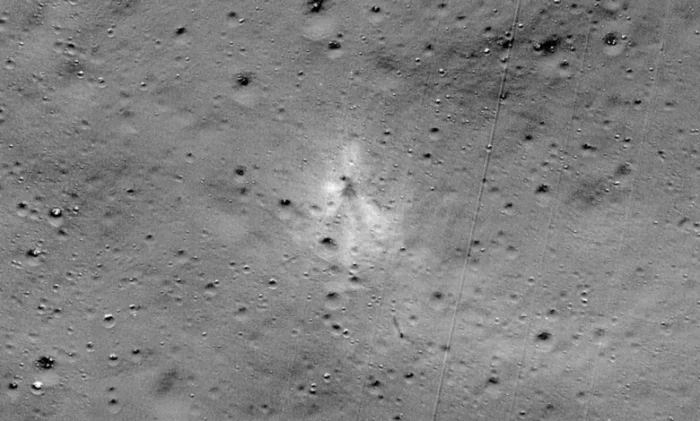 В понедельник НАСА объявило, что наконец нашло место крушения потерянного лунного корабля Индии Викрама. Изображения, полученные с помощью камеры Lunar Reconnaissance Orbiter, показывают место крушения судна примерно в 600 км от южного полюса Луны, как показано выше, включая точку удара и поле обломков, окружающих его.