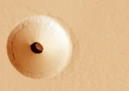 На Марсе круглый кратер, открывающийся на вершине вулкана, был бы входом в “пещеру”, внутри которой можно было бы найти следы жизни. Каждый день НАСА публикует свой «Образ дня» — возможность для общественности оценить чудеса Солнечной…