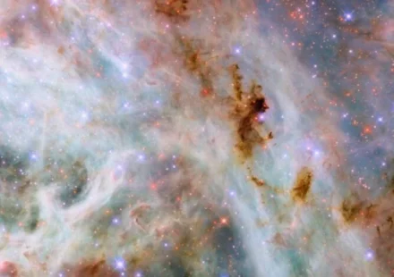 Космический телескоп Хаббл сделал потрясающий снимок ярких и красочных облаков газа и пыли, расположенных рядом с туманностью Тарантул. Эта туманность, находящаяся на расстоянии около 160 000 световых лет от Земли в галактике Большое Магелланово Облако,…