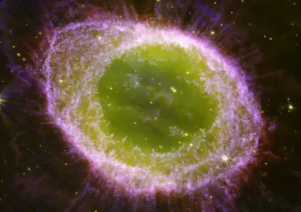 Космический телескоп имени Джеймса Уэбба недавно обратил свой взор на туманность Кольцо, открыв в новом свете этот знаковый объект, представляющий собой последние главы в жизни звезды. Взгляд на будущее нашей системы Расположенная на расстоянии около…