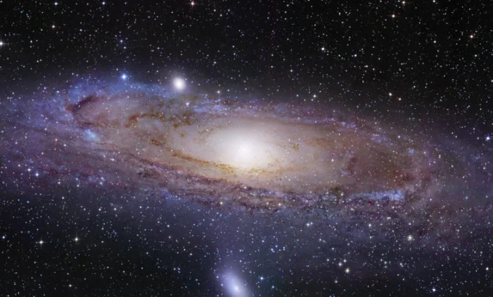 Обратите внимание, что Андромеда — НЕ самая близкая к нам галактика; на самом деле есть несколько второстепенных галактик, которые расположены намного ближе к нам, чем галактика Андромеды, но последняя является ближайшей большой спиральной галактикой.