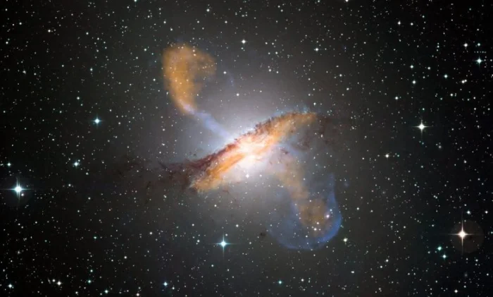 Это изображение пекулярной галактики Центавр А. Изображение получено из Европейской южной обсерватории.[/caption]