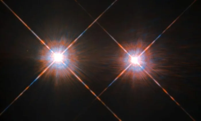 Фотографии самых ярких звезд системы Альфа Центавра A (слева) и Альфа Центавра B (справа), сделанные космическим телескопом Хаббл[/caption]