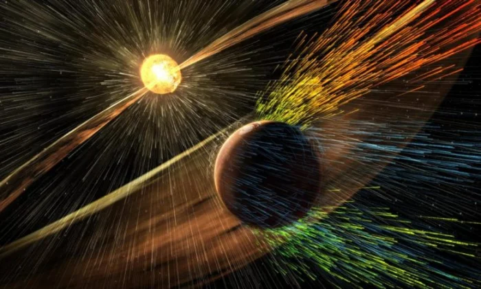 Далекий от негостеприимной пустыни, которую мы знаем сегодня и которая заслужила прозвище «красной планеты», Марс когда-то был частично покрыт океанами, сохранившимися благодаря магнитному щиту, похожему на земной. Но она развивалась по-другому, и неясно, почему. Его магнитное поле постепенно разрушалось в течение тысяч лет, пока, наконец, не исчезло полностью. Не было ничего, что могло бы защитить его атмосферу и океаны от солнечного ветра. В конце концов они испарились в космос, сделав его практически бесплодным.