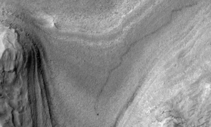 Фотографии были сделаны в конце февраля 2025 года с помощью камеры HiRISE (High-Resolution Imaging Science Experiment), установленной на MRO. На изображениях, опубликованных на сайте Лаборатории реактивного движения NASA (JPL), Curiosity виден как крошечная точка в нижней части кадра, а за ним тянется извилистая цепочка следов, оставленных в марсианском грунте.