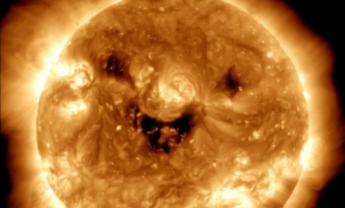 26 октября Обсерватория солнечной динамики НАСА запечатлела довольно забавное изображение Солнца: расположение корональных дыр было таким, что наша звезда на мгновение приобрела вид улыбающегося лица. Изображение быстро распространилось в Интернете и вызвало множество комментариев; некоторые сравнивали наше Солнце с тыквой на Хэллоуин, другие видели сходство с персонажем из «Телепузиков».