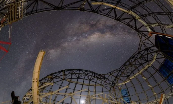 3 апреля ESO опубликовала впечатляющую ночную фотографию, сделанную внутри купола. На ней виден ход работ, а на заднем плане — сердце Млечного Пути, освещенное яркими звездами.