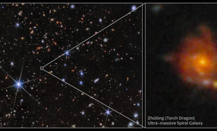 Международная команда астрономов под руководством Кристины Уильямс из NSF NOIRLab открыла самую удалённую из известных спиральных галактик. Она получила название Чжулун, что означает «Факельный Дракон» в китайской мифологии, и находится на расстоянии около 12,5 миллиарда световых лет от Земли.