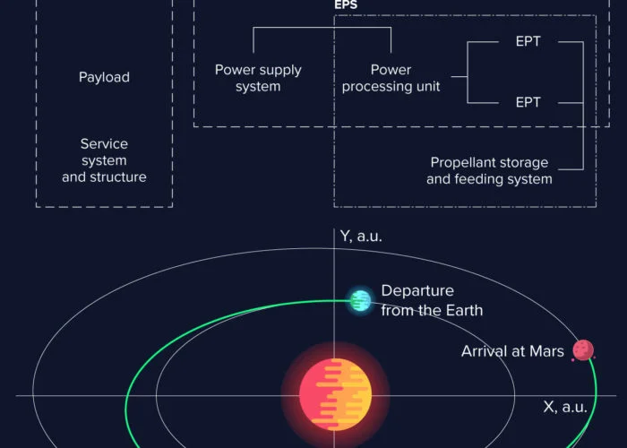 Математики Университета РУДН решили проблему оптимизации траектории для космических аппаратов с ЭПС. Они определили максимально возможную полезную массу космического корабля и оптимальные характеристики двигательной установки, наиболее подходящие для каждой из рассматриваемых миссий.