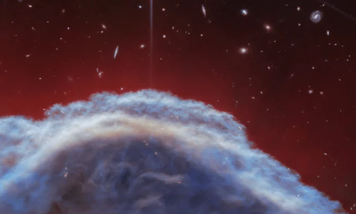 Используя приборы MIRI (Mid InfraRed Instrument) и NIRCam (Near InfraRed Camera) космического аппарата «Джеймс Уэбб», исследователи впервые выявили мелкомасштабные структуры освещенного края Конской головы. Они также обнаружили сеть полосчатых структур, простирающихся перпендикулярно PDR, которые содержат частицы пыли и ионизированный газ, увлекаемый туманностью.