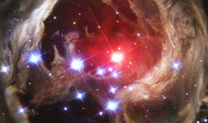 Звезда — красный гигант T Ursae Minoris (сокращенно T UMi), и астрономы определили, что она просто извергается в тепловом импульсе, который приходит только каждые 10 000 — 100 000 лет.