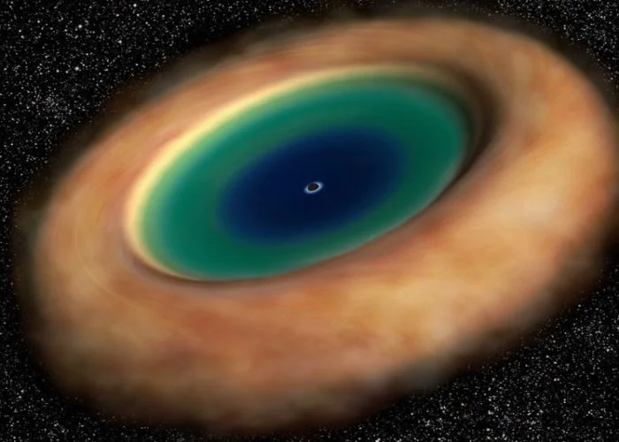 В итоге ученым представилась возможность рассмотреть дискообразную структуру. Она расположена на расстоянии от намеченного центрального места черной дыры. Согласно сведениям исследователей, радиус данной структуры примерно охватывает 800 световых лет, в то время как толщина радиуса достигает целых 900 световых лет.