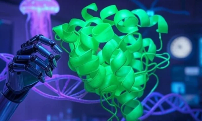 Особое место занимают флуоресцентные белки (GFP), которые светятся зелёным. Их нашли у медуз и кораллов, и они стали незаменимыми инструментами для учёных: с их помощью можно помечать молекулы и смотреть, что происходит внутри живой клетки. Теперь к ним добавился esmGFP — первый в истории белок, созданный не эволюцией, а алгоритмом.