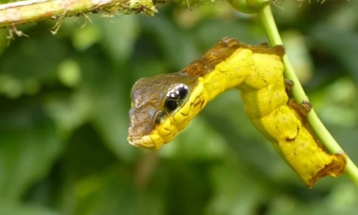 Гусеница одного вида, в частности, способна совершить настоящий подвиг с точки зрения оборонительной стратегии. Ведь она может изменить свой облик, чтобы выглядеть как змея. Это позволяет ей обмануть своих многочисленных хищников, чтобы защитить себя.