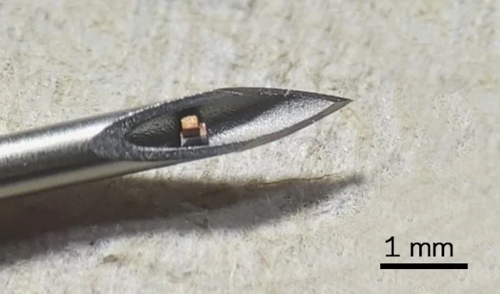 Конечно, это не мозг на чипе. Пока это довольно простая система, и её задача — измерять температуру тела. Исследователи разрабатывали её для контроля за ультразвуковой терапией. Но сам факт: мы можем внедрить термометр в любую точку организма, просто уколов его иглой. Забавно, что обычные радиочастоты для связи тут не работают — длина волны слишком велика для такого малютки.