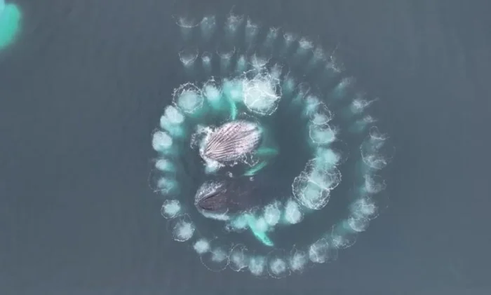 Невероятные кадры с беспилотника показывают, как горбатые киты создают последовательности Фибоначчи