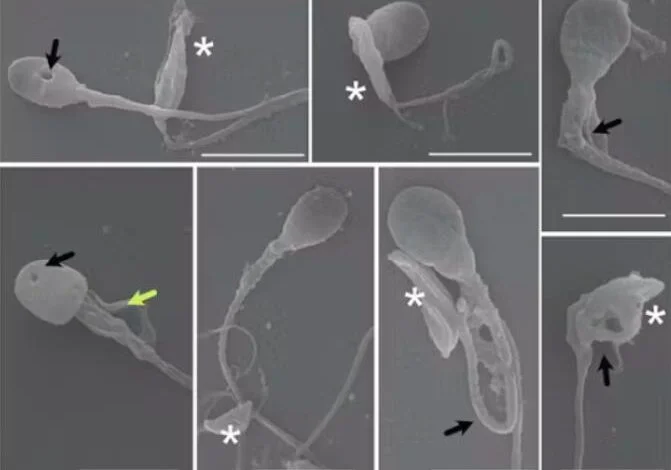 «У некоторых сперматозоидов были отверстия в головке, что свидетельствует о попытках паразитов проникнуть в них, как они делают это с любыми другими типами клеток органов, в которые проникают», — говорит Салливан. Кроме того, тахизоиты приводили к потере митохондриального мембранного потенциала (ММП) без изменения концентрации активных форм кислорода (АФК), что приводило к гибели клеток. Таким образом, митохондриальная дисфункция представляется возможным механизмом повреждения сперматозоидов.