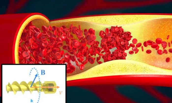Спиралевидный микроробот, который плавает по кровеносным сосудам, чтобы очистить их