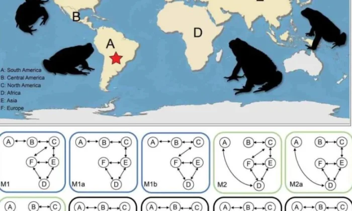 Чтобы понять, как их признаки эволюционировали, позволяя им занимать новые континенты, исследовательская группа проанализировала образцы ДНК 124 видов из Африки, Азии, Европы, Южной Америки, Северной Америки и Океании. Эти данные были дополнены информацией из существующих баз данных, охватывающих сотни других видов. Компьютерное моделирование позволило обработать эти данные и восстановить геологическое расселение жаб на протяжении нескольких десятков миллионов лет. Эта работа определила, в какие моменты появились признаки, дающие эволюционные преимущества, и когда возникли новые виды.