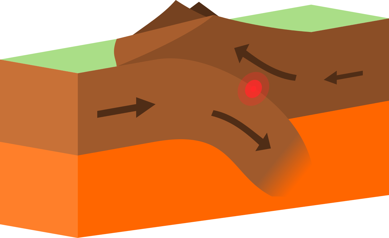 - Движение в складчатых областях. Возникает на стыке плит, при этом появляются горные системы.