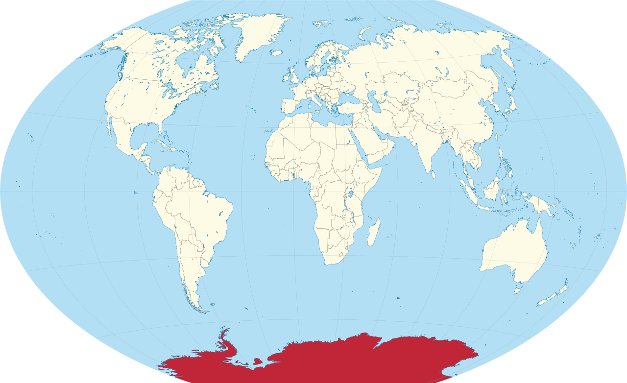 Антарктида располагается на Южном полюсе и не имеет постоянного населения и стран. Материк используется в качестве научной базы. Антарктида является пятым по величине континентом и наименее по численности населения. Она полностью окружена Южным океаном.