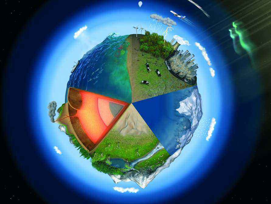 Земля состоит из четырех основных сфер или оболочек, которые зависят друг от друга и являются биологическими и физическими компонентами нашей планеты. Их научно называют биофизическими элементами, а именно гидросферой («гидро» для воды), биосферой («био» для живых существ), литосферой («лито» для суши или земной поверхности) и атмосферой («атмо» для воздуха). Эти основные сферы нашей планеты далее делятся на различные под-сферы.