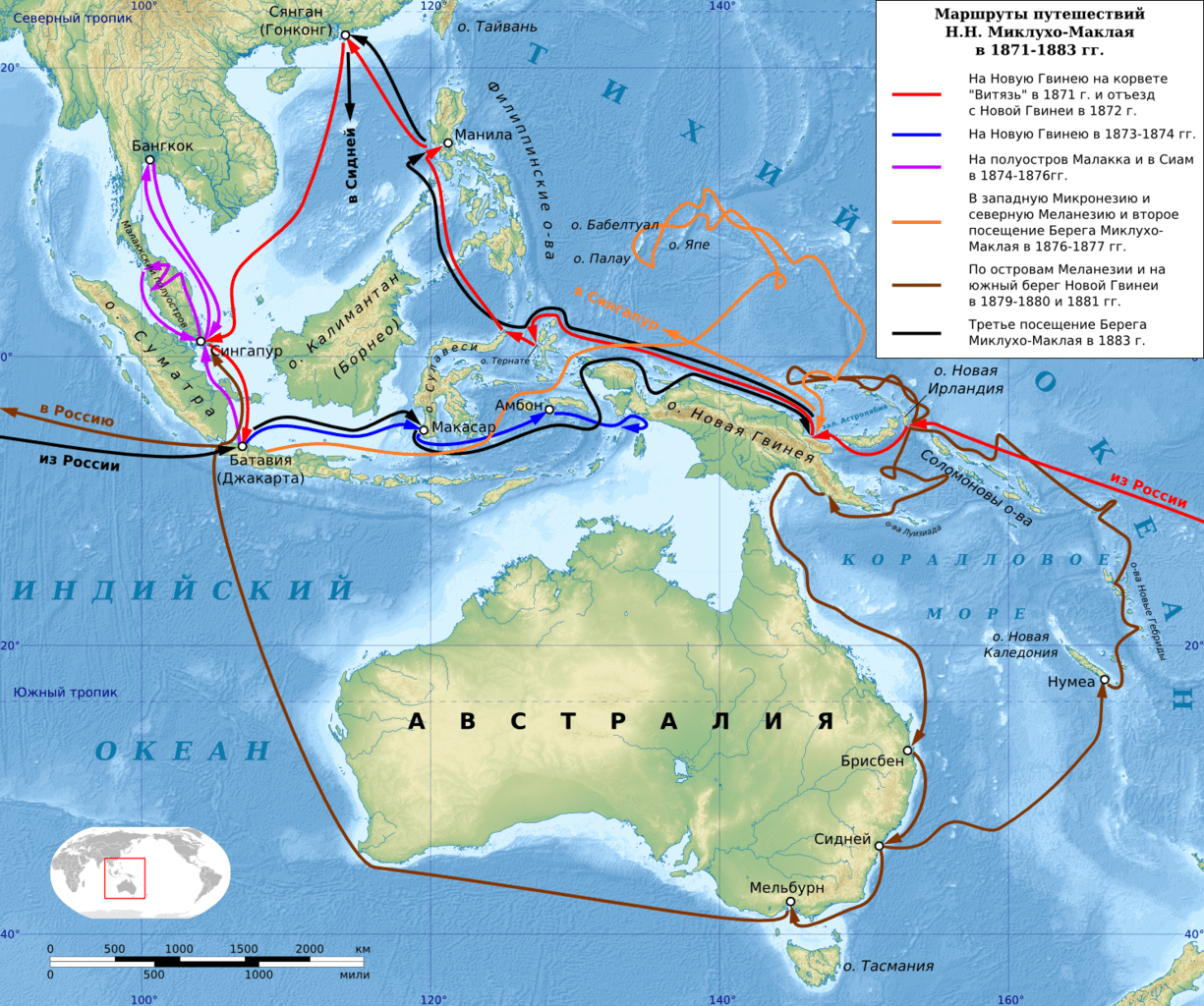 Миклухо-Маклай Н. Н. – биография, открытия и карта с маршрутами экспедиций