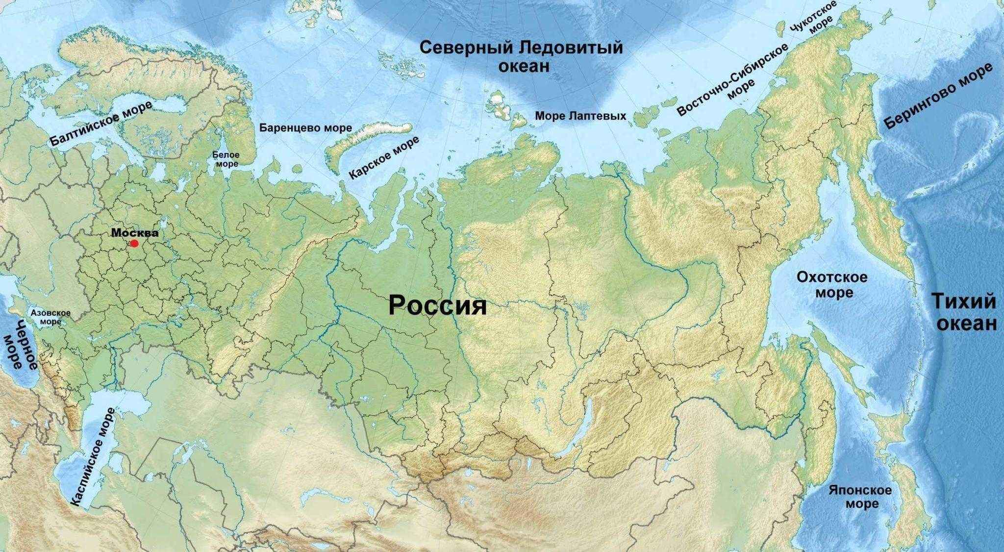Моря и океаны, которые омывают Россию — список, описание и карта