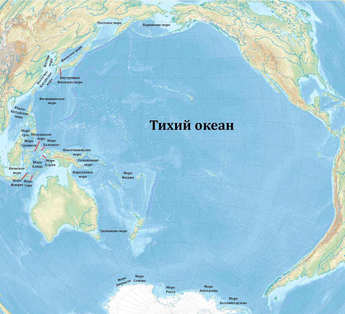 Моря Тихого океана — список, характеристика и карта