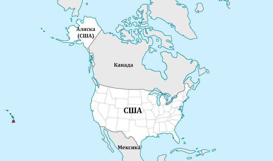 Соединенные Штаты Америки находятся на материке Северная Америка. По суше они граничат только с Канадой на севере и с Мексикой на юге. Также есть морская граница с Россией, проходящая через Берингов пролив. Она возникла только после продажи американцам Аляски. Площадь государства оценивается в 9,5 млн кв. км. По этому показателю США незначительно уступают Китаю и Канаде, но почти вдвое проигрывает России.