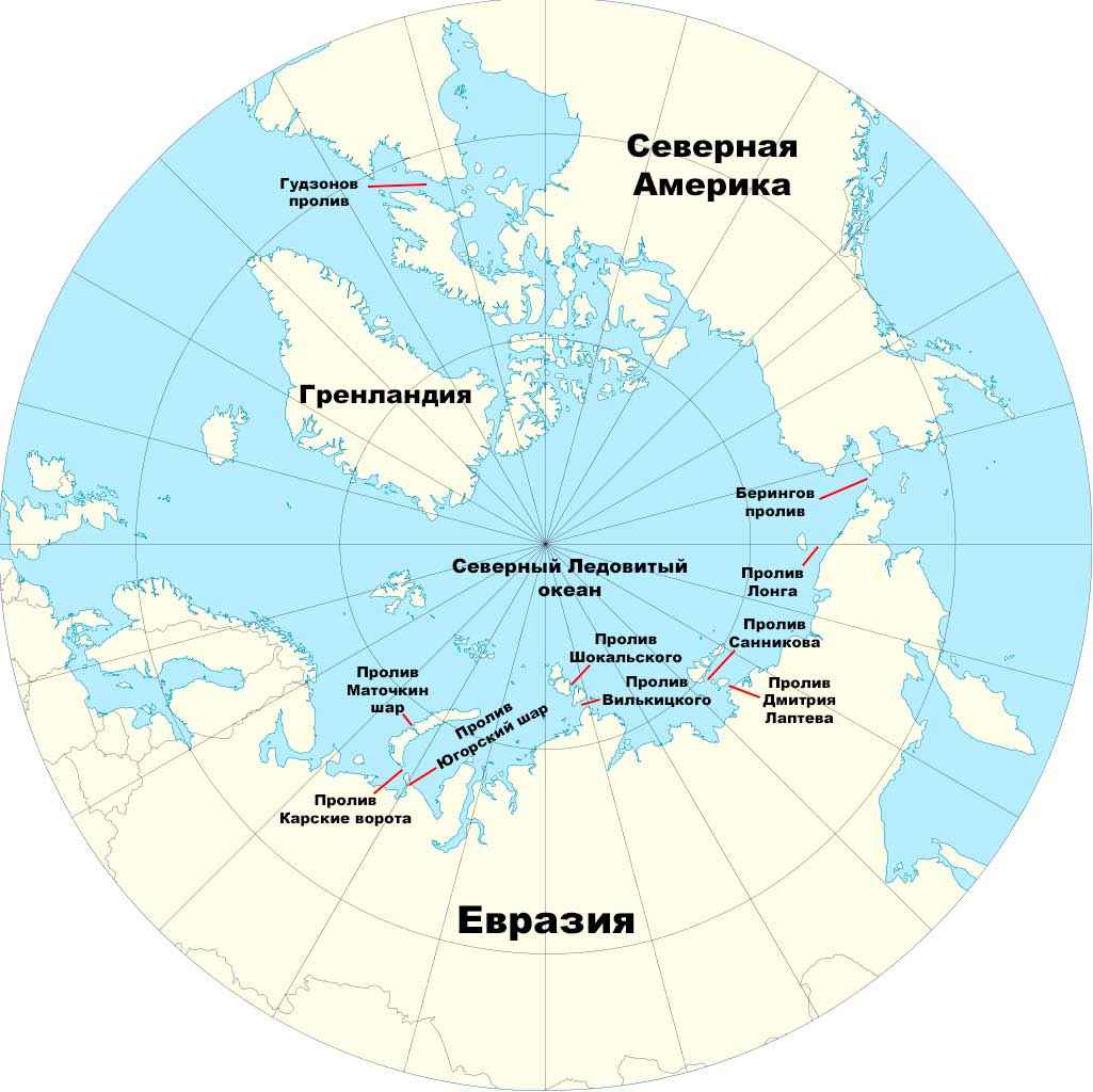 Самые большие проливы Северного Ледовитого океана — список, характеристика и карта