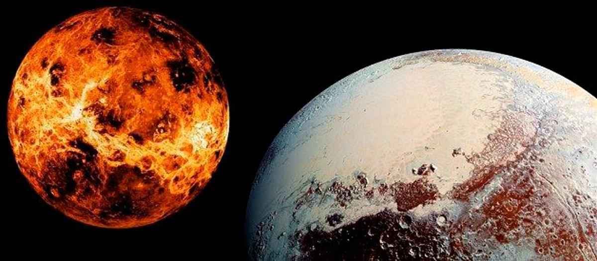 Плутон — это карликовая планета, состоящая из льда и камня. Изначально считавшаяся девятой планетой, Плутон является наиболее удаленным от солнца и имеет самые низкие температуры, в среднем около -225º C. Температуры на Плутоне зависят от его близости к Солнцу: когда планета приближается к звезде, температура атмосферы становится значительно теплее. Температура поверхности более холодная, чем атмосферы, из-за влияния метана, который создает инверсию температур. Волны давления в атмосфере снижают температуру, делая их более холодными, чем предполагалось.