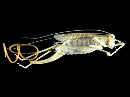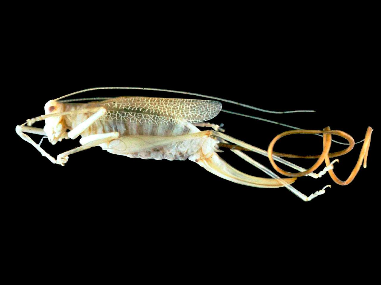 Червь-волосатик (Spinochordodes tellinii) является паразитом, который живет в пресной воде. Он заражает различных водных животных и насекомых, включая кузнечиков и сверчков. После заражения кузнечика, червь растет и питается внутренними частями его тела. По мере того как червь начинает достигать зрелости, он продуцирует два определенных белка, которые вводит в мозг хозяина. Эти белки контролируют нервную систему насекомого и заставляют зараженного кузнечика искать воду. Под контролем червя-волосатика, зомбированный кузнечик погружается в воду. Червь покидают хозяина, а кузнечик тонет. Оказавшись в воде, червь-волосатик ищет партнера, чтобы продолжить свой репродуктивный цикл.