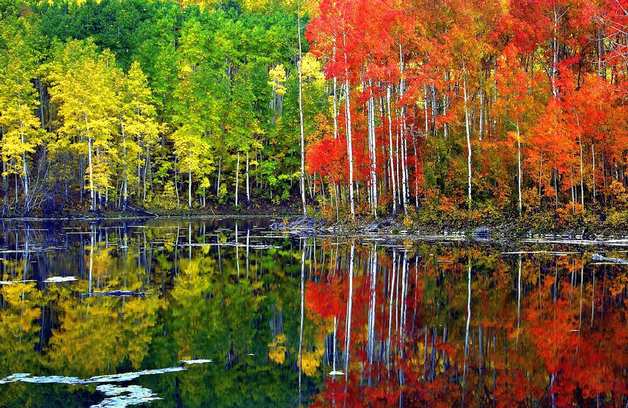 Но постепенно по ночам холодает. На деревьях можно наблюдать все больше разноцветной листвы. Особенно ярко окрашиваются клены. Их листья обретают почти все яркие краски осени, и становятся: красными, лиловыми, желтыми, оранжевыми и зелеными.