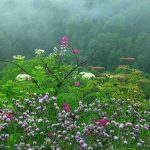 Дальше размещена освещенная солнцем поляна, возле которой и находится березовая роща. В центре картины треугольником голубеет небо. Благодаря такому размещению, пейзаж похож на геометрический узор. Кажется, что художник использовал много красок, но оказывается он не брал много цветов, а менял только их оттенки.